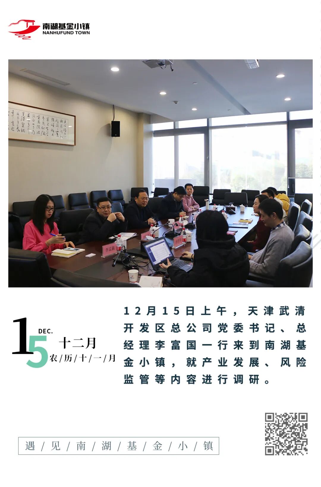 天津武清开发区总公司党委书记、总经理李富国一行调研南湖基金小镇